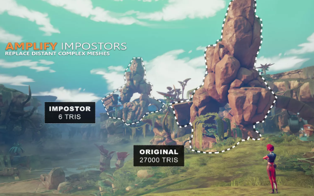 3D Imposter スプライトのレンダリングを使用して、長距離で2つの三角形に簡略化します。Amplify Impostors はあなた(アフィリエイトリンク)のためによくそれをしません。