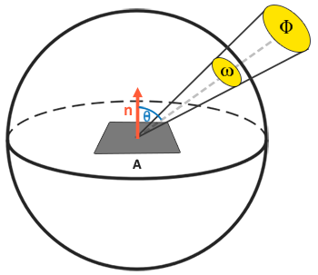 放射強度:放射強度は、立体角あたりの放射束の量、または単位球への投影面積に対する光源の強度を測定します。たとえば、全方向に均等に放射する全方向性の光が与えられた場合、放射強度は特定の領域(立体角)にエネルギーを与えることができます。