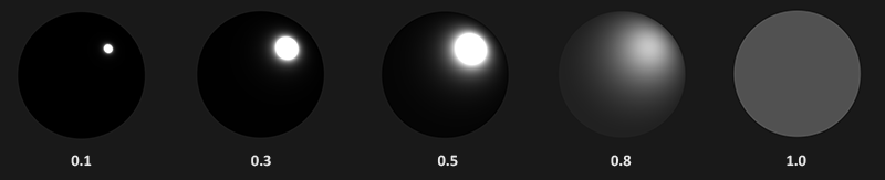 粗さの値が大きいほど、鏡面反射の形状が大きくなり、滑らかな表面の鏡面反射の形状が小さくて鋭いのとは対照的です。