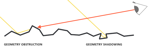 ジオメトリ関数は、相対的な表面積を統計的に概算し、その微小な表面の細部が互いに影を落とし、光線が遮られます。