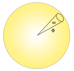 どこ 私 放射束です Φ 立体角を超えて ω。