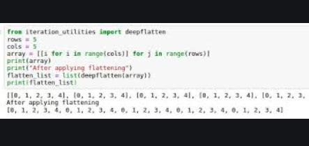 反復アプローチは、間違いなくそれらすべての中で最も複雑です。このアプローチでは、を使用しdequeて不規則なリストをフラット化します。公式ドキュメントを引用すると、「Dequesはスタックとキューの一般化です(名前は「deck」と発音され、「両端キュー」の略です)。Dequeは、スレッドセーフでメモリ効率の高い追加と、Dequeの両側からのポップをサポートし、どちらの方向でもほぼ同じO(1)パフォーマンスを実現します。」